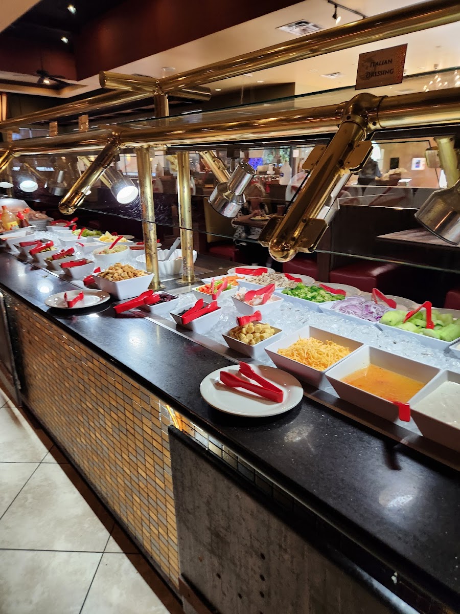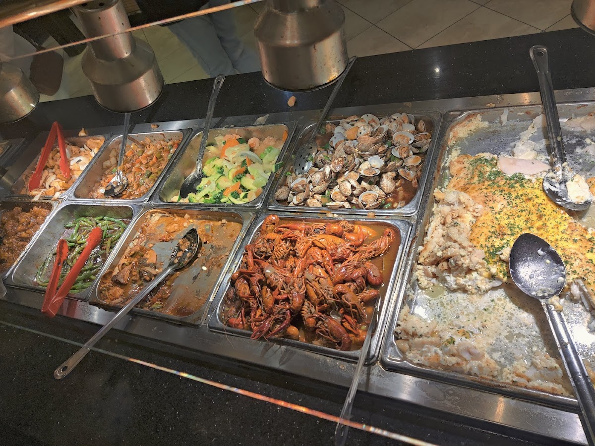 The location was prettier inside than I expected, they had a large selection of items, and the wait staff was very courteous and attentive. We were there in the evening and they had a large selection of seafood and sushi, the price point was about $20/person. I felt like the meats were a bit toughened, maybe from sitting under the heat lamps too long? But they had nice egg rolls and spring rolls, I enjoyed the noodle dishes, and I felt like the fresh foods had a wider selection than I expected and were of good quality.